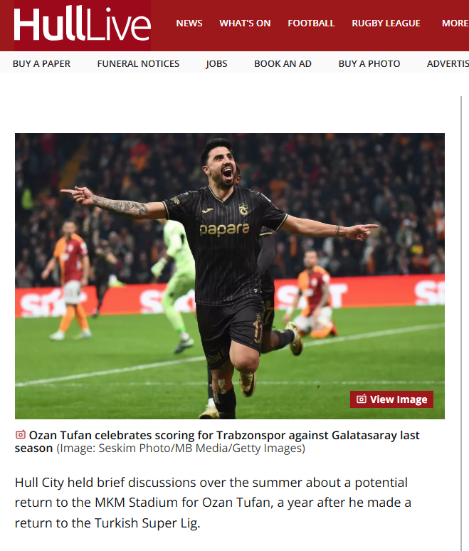 Ozan Tufan hakkında flaş bir transfer iddiası gündeme geldi. 30 yaşındaki ismin eski takımı Hull City'e geri dönebileceği öğrenildi. Hulldailymail'de yer alan habere göre, İngiliz ekibinin Tufan'ı geri transfer etmek için yaz boyunca kısa görüşmelerde bulunduğu öne sürüldü. Hull City Sportif Direktörü Jared Dublin, Ozan Tufan için yaz transfer döneminde devreye girdiklerini doğruladı. Haberde son olarak milli futbolcunun uzak gelecekte Hull City'e geri dönme ihtimalinin olduğu ve bu duruma sıcak baktığı vurgulandı.